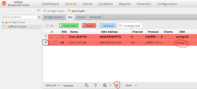 So in Part 1 of this series on Airtight WIPS, we looked at how Airtight determines if an AP is rogue, or an “on-network rogue” by some vendors definition. Now that we have found an AP is plugged into my network, what do I do with it. In Airtight, we can quarantine the rogue AP, meaning we will try to prevent clients from associating to it.