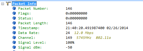 We see 22dbm difference, so I’m positive that this packet isn’t coming from my phone, which is very close to the capture adapter. Both the rogue and the Airtight AP are in the lab about 30 feet away.