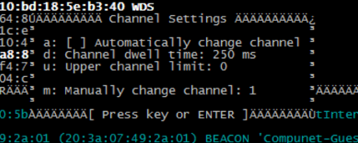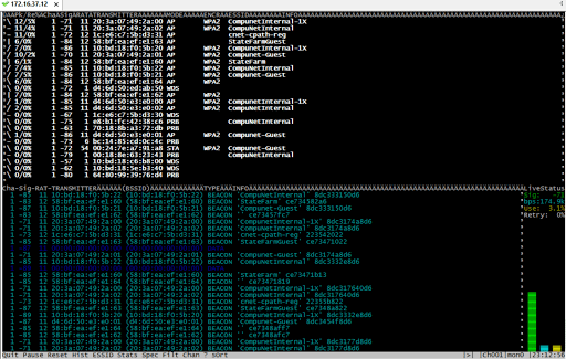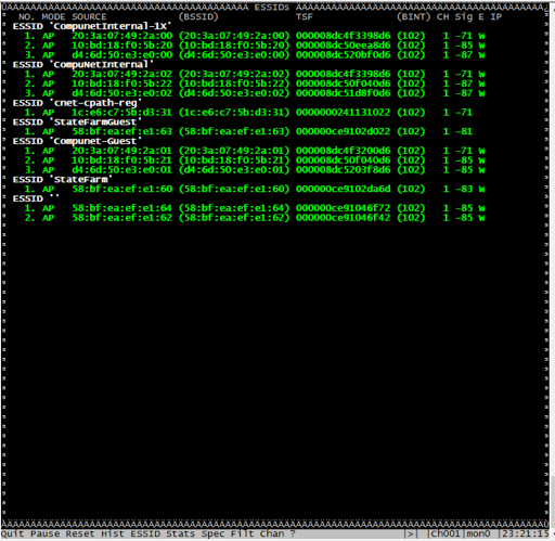 e – Displays ESSIDs. Here you can see each BSSID on the channel grouped by the SSID it’s advertising.